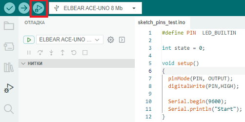 Режим отладки в ArduinoIDE 2