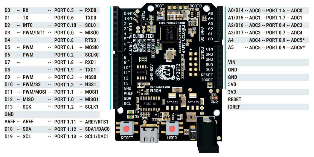 Пакет поддержки платы Elbear Ace-Uno на базе микроконтроллера MIK32 Амур в среде программирования Arduino IDE.